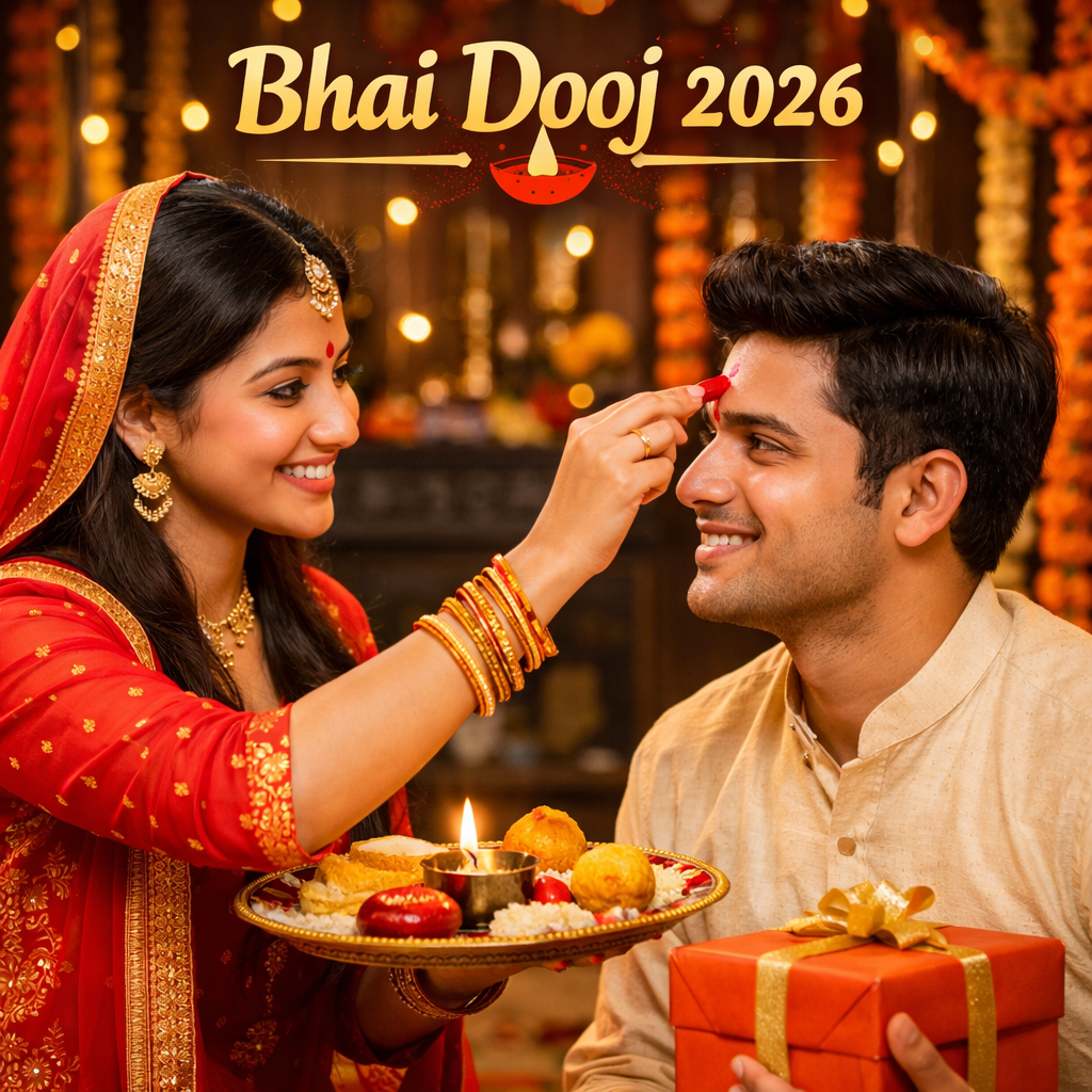 भाई दूज 2026 का त्योहार होली के बाद मनाया जाने वाला एक महत्वपूर्ण हिंदू पर्व है। इस दिन बहन अपने भाई को तिलक लगाकर उसकी लंबी उम्र और खुशहाली की कामना करती है।